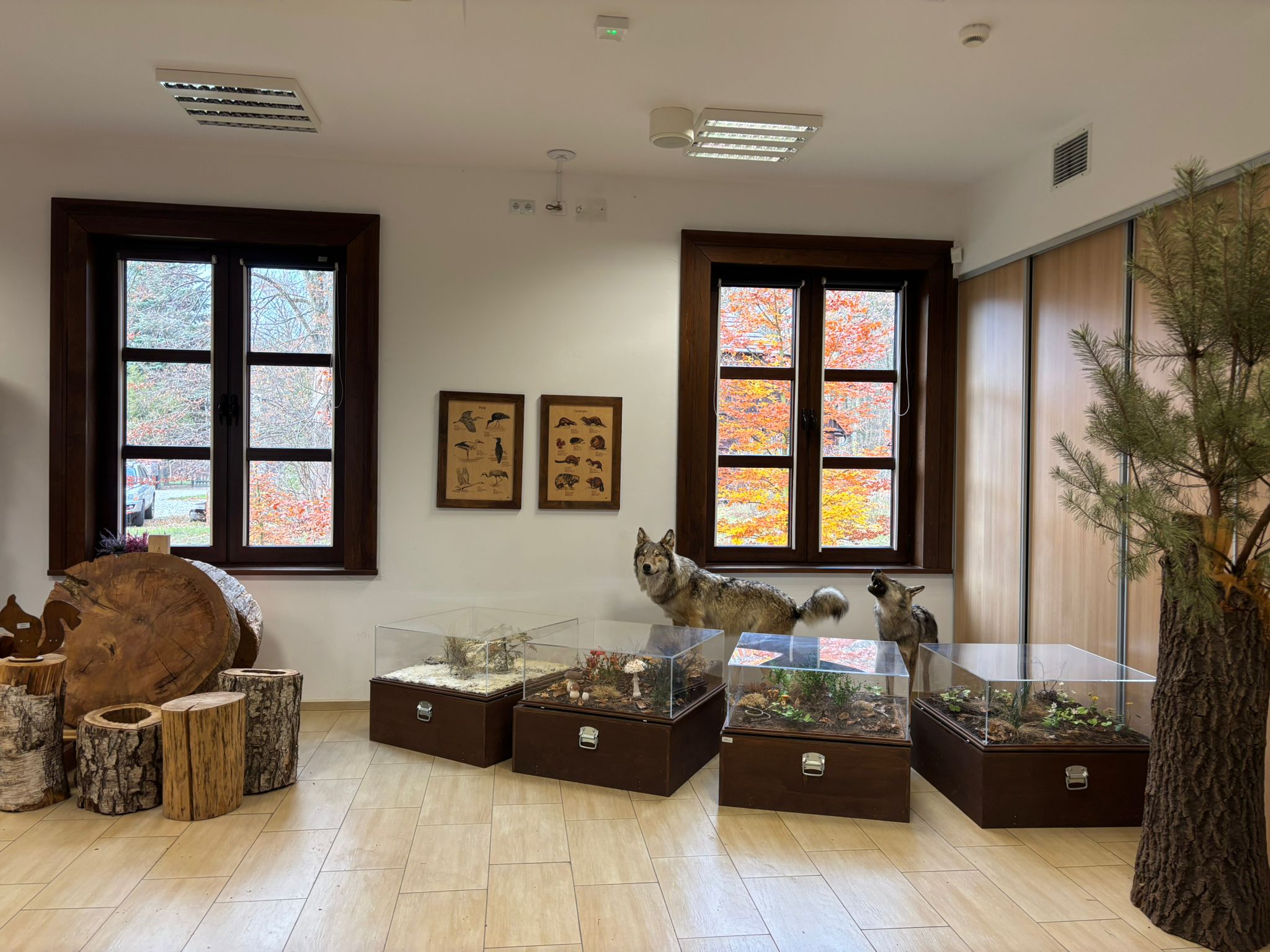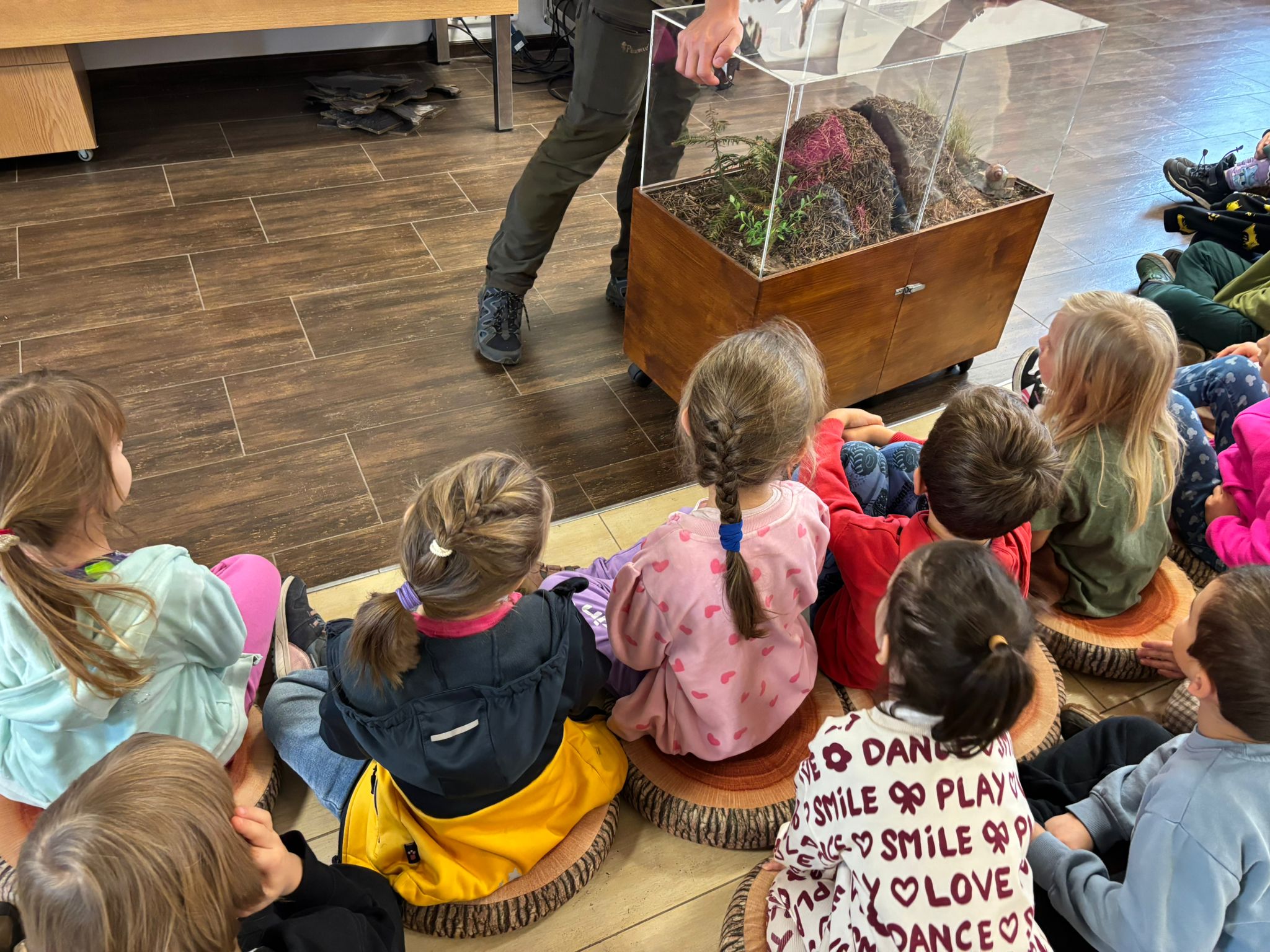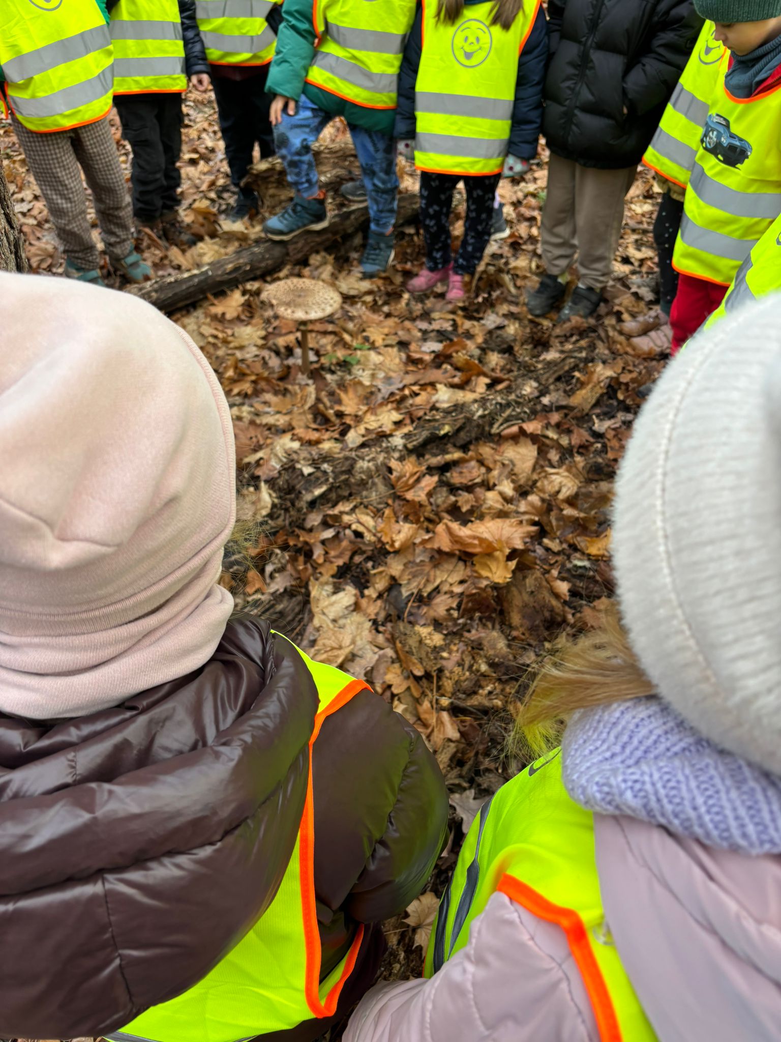 W dniu 17.11.2025r. dzieci z grup Rybki i Kotki wyruszyły na wycieczkę do Centrum Edukacji Przyrodniczo – Leśnej w Powsinie na zajęcia pt. „ Jesienne wędrówki w przyrodzie i lesie.” Dzieci miały możliwość zaobserwowania środowiska leśnego i jego niektórych mieszkańców. Leśny spacer dostarczył wszystkim nie tylko wrażeń wizualnych i słuchowych ale także podarował dawkę świeżego leśnego powietrza organizmom naszych przedszkolaków. Słuchając opowieści pana edukatora dzieci dowiedziały się wielu ciekawych rzeczy o życiu ptaków i mrówek. Pan opisywał jak zbudowane jest mrowisko. Prawdziwe mrowisko widziały dzieci w lesie , a w sali do szczegółowego omawiania znajdowało się mrowisko sztuczne. Dzieci w trakcie wycieczki dowiedziały się także w jaki sposób przemieszczają się drzewa oraz wzbogaciły swoją wiedzę na temat grzybów. Dzieci słuchały odgłosów lasu: szum, szelest, głosy ptaków i większych zwierząt. W lesie wszyscy mogli zobaczyć chrząszcze, pająki i pajęczyny, ślimaki, mrówki, ptaki oraz dostrzec, co znajduje się pod zwalonym fragmentem pnia drzewa i jak z bliska wygląda mech. Wycieczka była ciekawym doświadczeniem przyrodniczym i bardzo podobała się dzieciom, a rozmowy o lesie jeszcze długo trwały w przedszkolu.